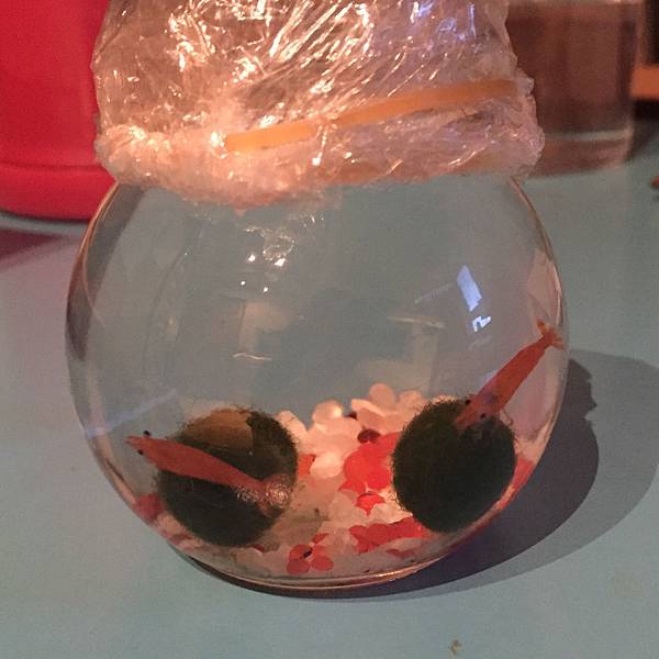 所以我就嚮往養蝦蝦,正好我買了球藻回來,在查詢球藻怎麼養的時候我查到有人把它跟蝦養一起,所以就又勾起我的興趣回國第二天就去買兩隻香吉士蝦來養!